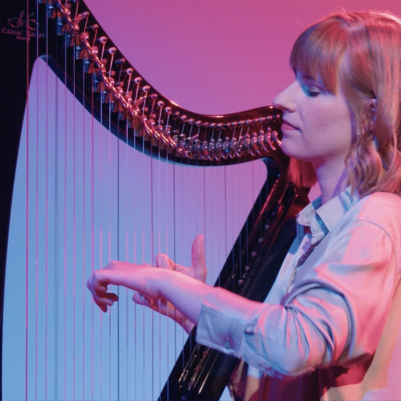 Live Harp Performance & Visuals is a full-length solo show in which Nina brings together her electro-acoustic pedal harp, immersive visuals, and animation. Each piece is paired with custom-made imagery shaped to reflect its atmosphere: from gentle motion to expansive, dreamlike worlds.